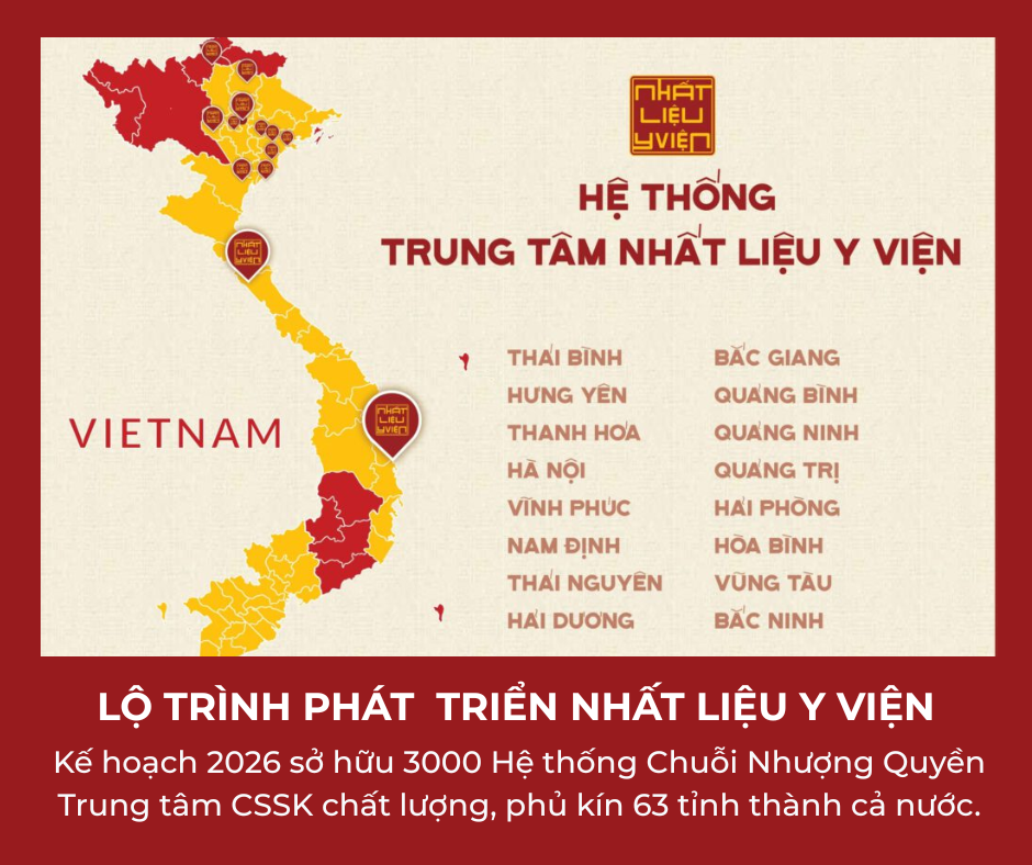 Với gần một thập kỷ hình thành và phát triển, Nhất Liệu Y Viện đã xây dựng được Hệ thống Chuỗi nhượng quyền Trung tâm Chăm sóc sức khỏe phủ kín các tỉnh thành từ Bắc vào Nam.